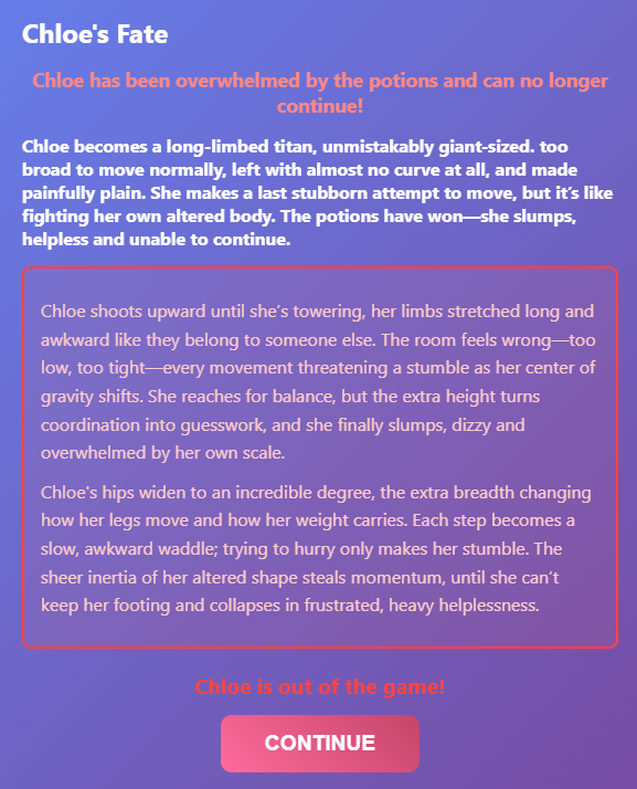 Belly, Butt, and Breast Expansion, Weight Gain, Inflation, Popping, Height Change, and multiple animal/inanimate/monster TFs.